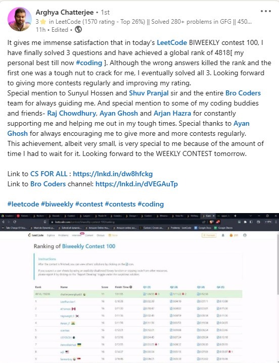 Karan and Shuv have jointly been into coding for the past 4 years. They have experience solving 4000+ questions across various platforms including top DSA and CP sites. They both interned at Microsoft last summer and from there they got a PPO offer and will be joining as SWE at Microsoft. Besides that, they also have excelled in ICPCs and many other coding contests throughout these years. They have been dedicated to making courses to help the coding community for the past 2 years. They have made 3 Courses and mentored 400+ students personally across the country in the past few months, helping them build coding consistency and guiding them for coding interviews, while in college.